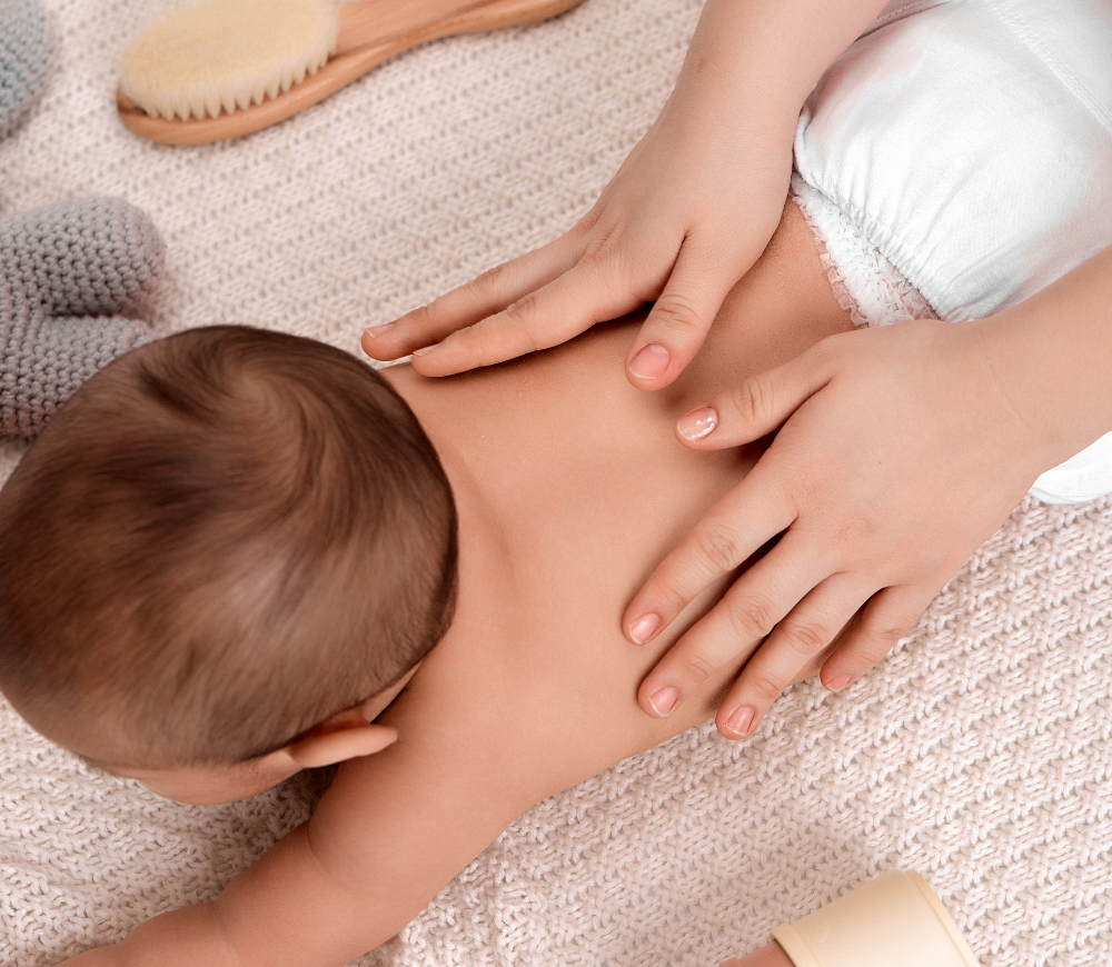 Massagem tradicional indiana para bebés, que promove o vínculo, o crescimento saudável e o relaxamento. Inspirada nas observações do Dr. Frédérick Leboyer.